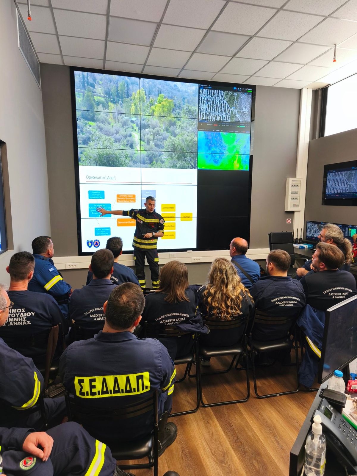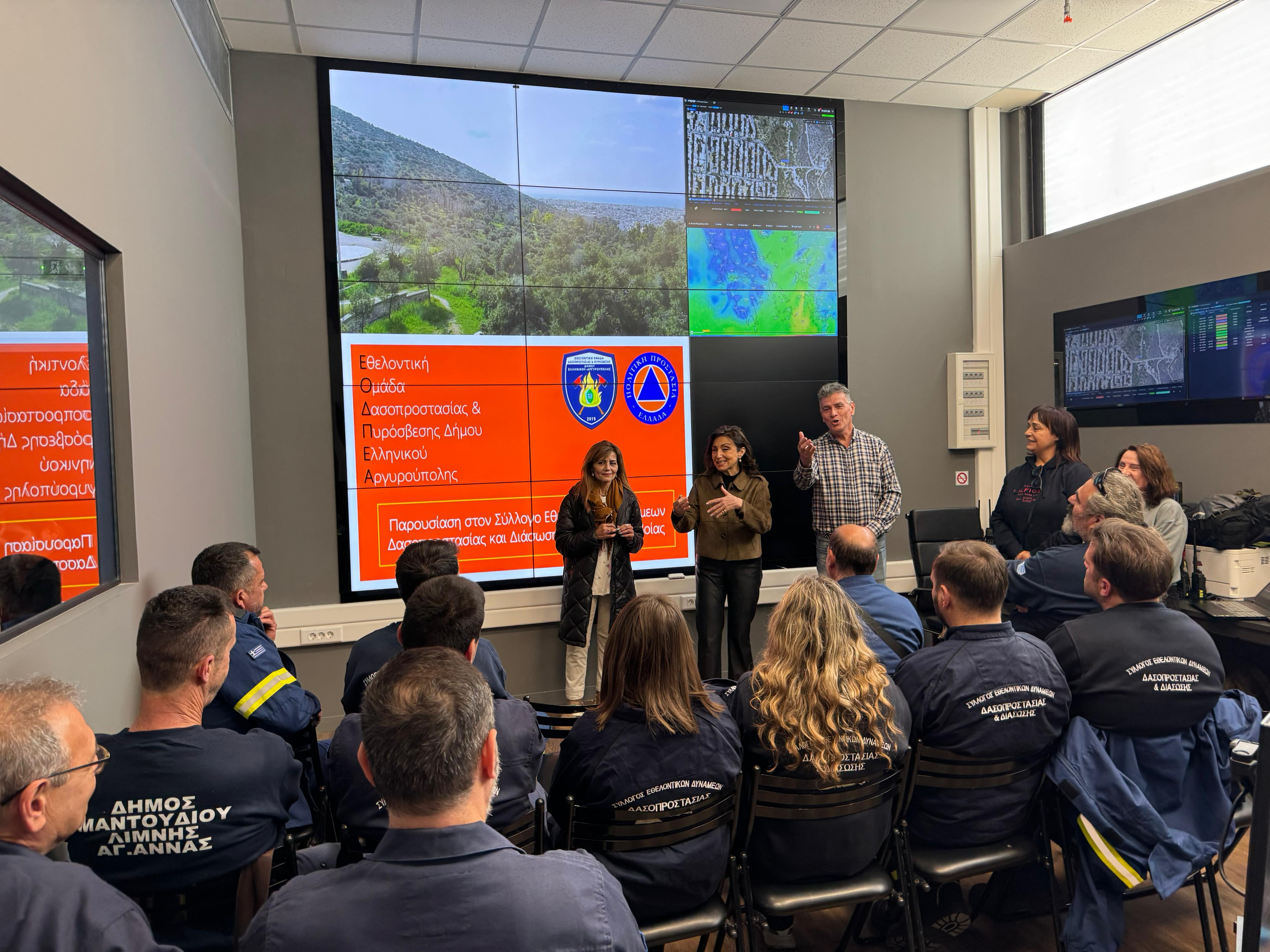 Την Κυριακή 8 Μαρτίου, στο Κέντρο Διαχείρισης Κρίσεων του Δήμου Ελληνικού – Αργυρούπολης φιλοξενήθηκαν 18 εθελοντές του Συλλόγου Εθελοντικών Δυνάμεων Δασοπροστασίας & Διάσωσης Προκοπίου Ευβοίας, στο πλαίσιο γνωριμίας, συνεργασίας και εκπαιδευτικής δράσης από την Εθελοντική Ομάδα Δασοπροστασίας & Πυρόσβεσης Ελληνικού- Αργυρούπολης με αντικείμενο τη δασοπροστασία και τη διαχείριση κρίσεων.