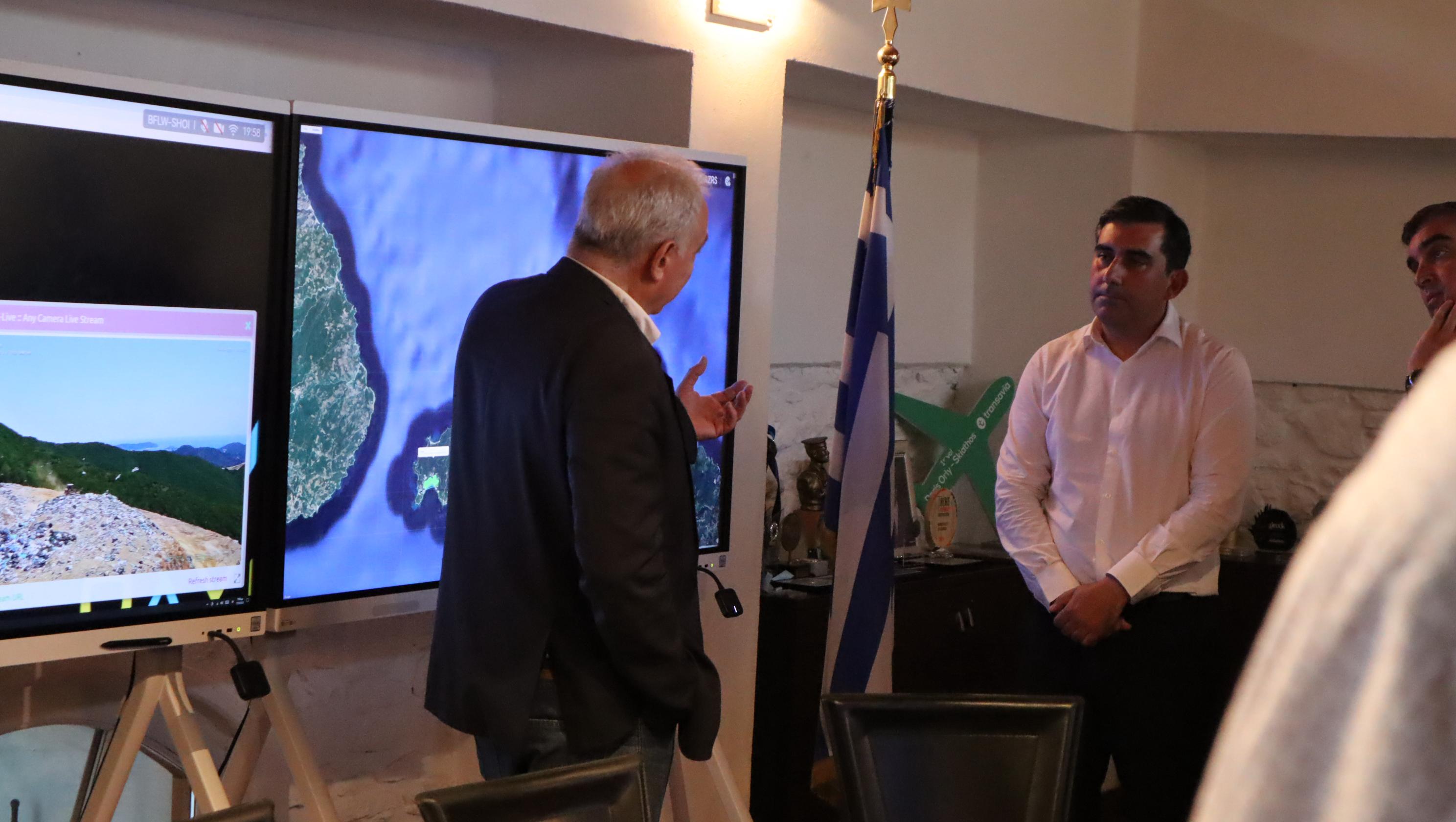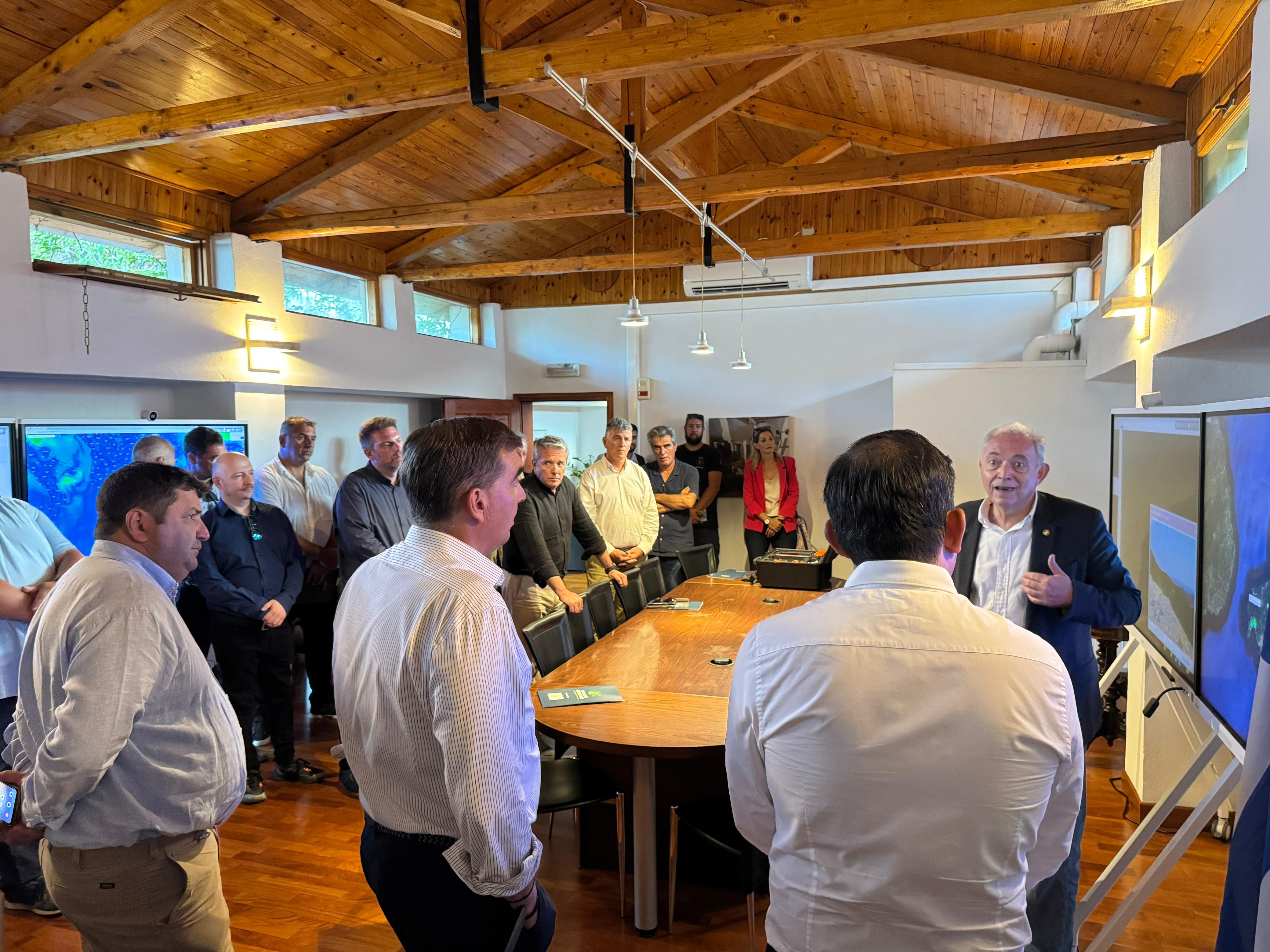 Μετά τη συνεδρίαση, ακολούθησε η πρώτη επίσημη παρουσίαση του προηγμένου συστήματος πυροπροστασίας και του νέου Επιχειρησιακού Κέντρου Διαχείρισης Κρίσεων στο δημαρχείο Σκιάθου, το οποίο παρακολουθεί σε πραγματικό χρόνο τα κρίσιμα σημεία και τις διαθέσιμες υποδομές πυρασφάλειας. Ο Δήμαρχος Σκιάθου Θοδωρής Τζούμας παρουσίασε το έργο και ανέδειξε την πρακτική του αξία ενόψει της αντιπυρικής περιόδου, χαρακτηρίζοντάς το ως «… μεγάλο άλμα στην ετοιμότητα και την αποτελεσματική διαχείριση κινδύνων».